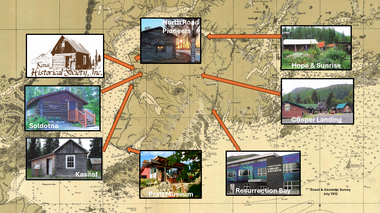 Cooper Landing Historical Society, Hope and Sunrise Historical Society, Kasilof Regional Historical Association, Kenai Historical Society, North Road Pioneers, Resurrection Bay Historical Society, and the Soldotna Historical Society collectively represent a microcosm of Alaska’s history and experiences.